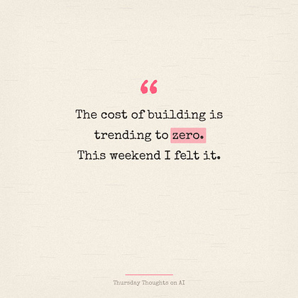 I keep writing about how the cost of building is trending to zero. This weekend I felt it.