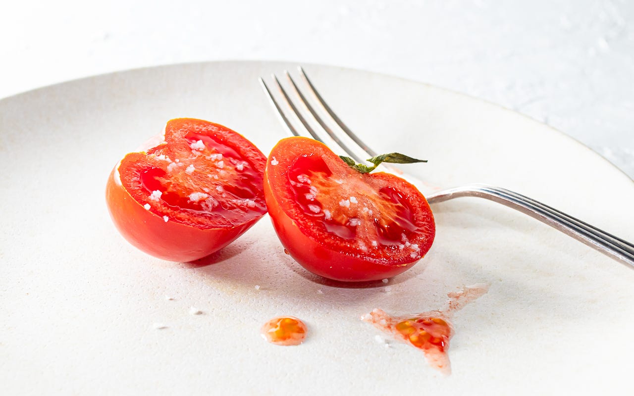 A simple salad - ripe tomato and sea salt