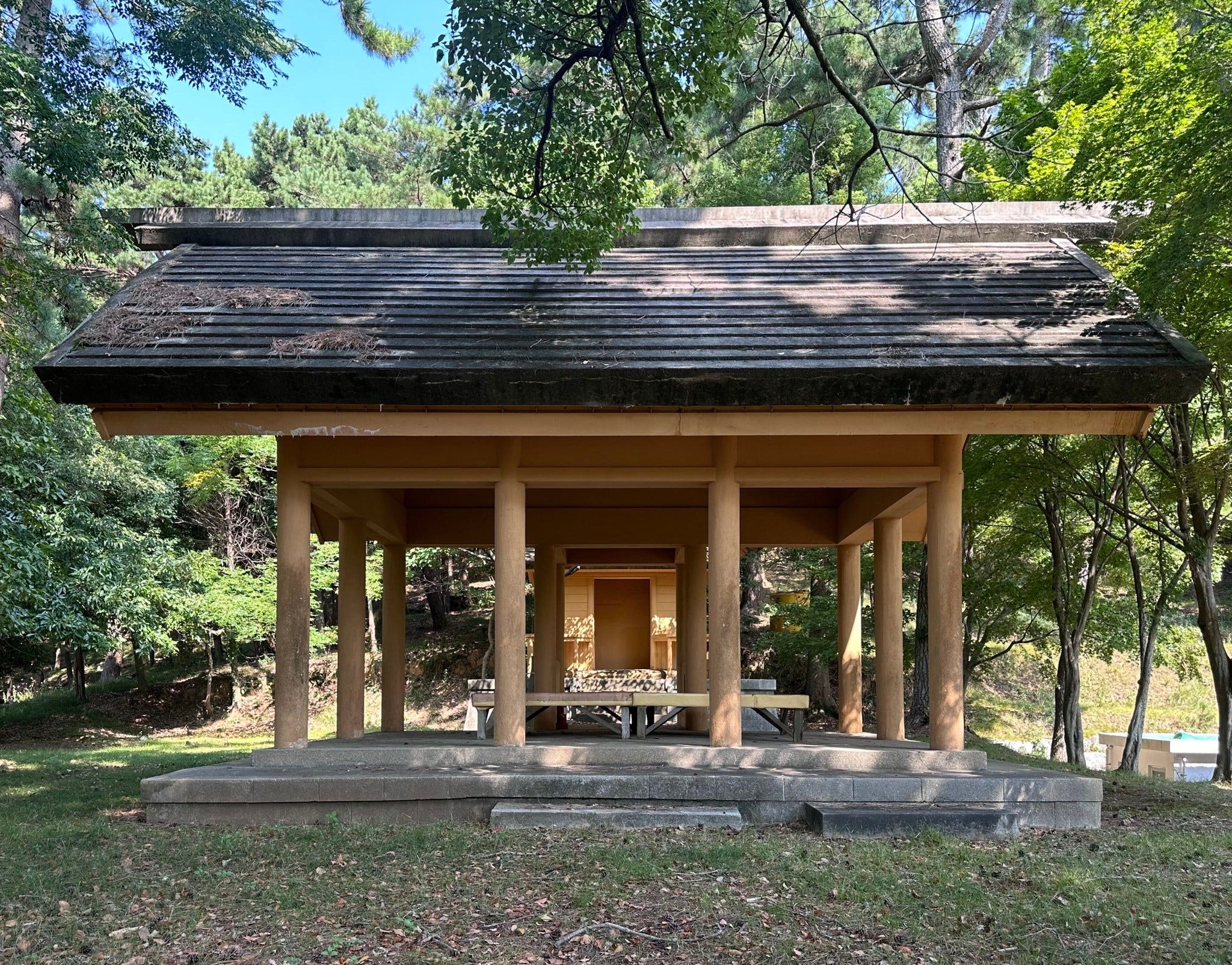 Hidden not far from the drop-off stop is the Sorokdo Shinto Shrine, in the staff housing area. It is normally closed to visitors, and I had to seek special permission to see it. It is composed of the haiden (offering/worship hall) and honden (main sanctuary). Its torii gate, which would have symbolized the boundary between the human and spiritual worlds, has long been lost. Old photos suggest it was originally erected by the stairs at the entrance. Both of the surviving buildings are relatively small, even compared to the smallest shrines in Japan. Their design is simple, with reinforced concrete imitating traditional wooden shrine architecture. According to the CHA's 2006 Survey Report, they were built in 1935 under the hospital’s fourth director. This was the central Shinto site on the island and served as a symbol of Japanese spiritual authority. However, it was not a space for daily enforcement of worship.