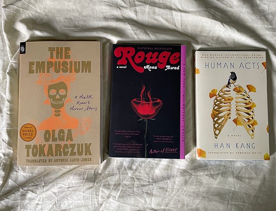 Finished The Empusium last night (my first Tokarczuk) and already looking forward to read more Tokarczuk. Next from this pile is Human Acts also my first Han Kang.