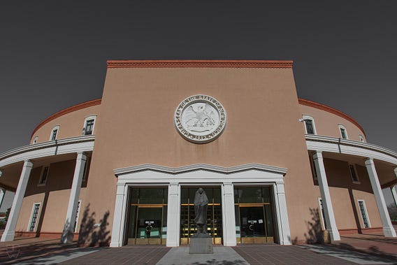 These doors which are the east entrance to ‘The Roundhouse’, New Mexico’s Capitol, are not particularly noteworthy but I have always liked the overall effect.