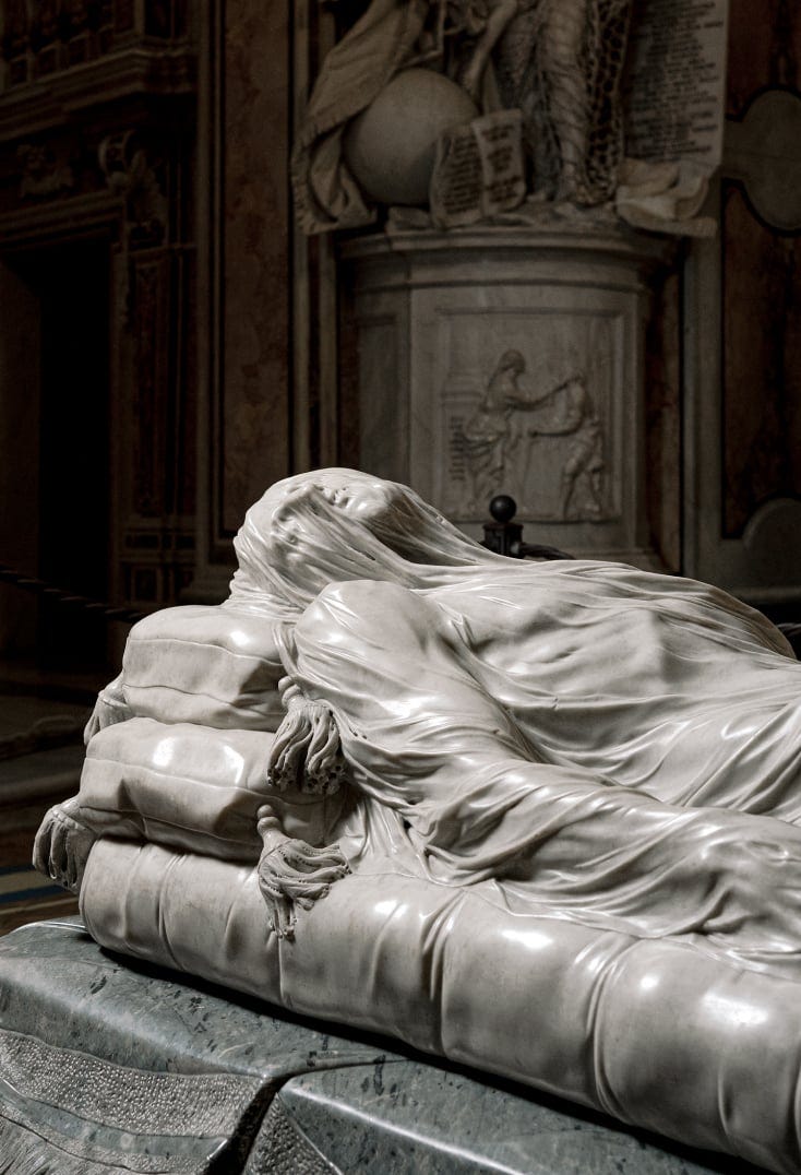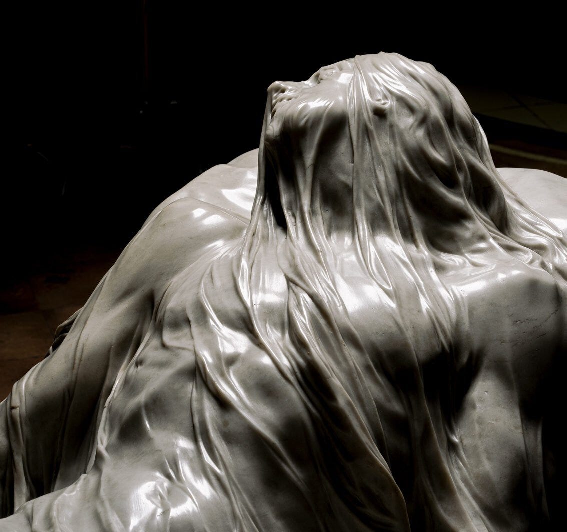 Imagine being able to make marble look like a transparent veil. Sculpted by the hands of Italian artist Giuseppe Sanmartino in the 18th century.