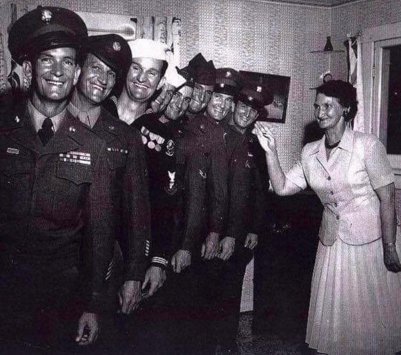 A mother with her 8 sons, who all served in World War 2. They all came back, safe and sound.