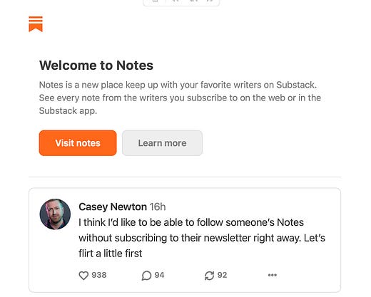 fuckin lol that the first note on the note digest newsletter that substack signed me up to without asking when I joined substack notes is a note about how it’s absolute garbage that you can’t use substack notes without being signed up to newsletters without consent Casey Newton