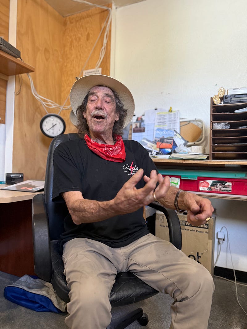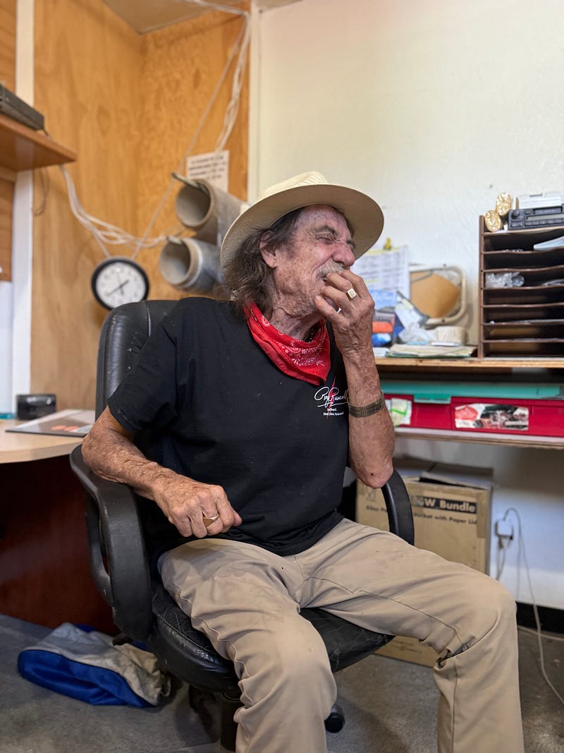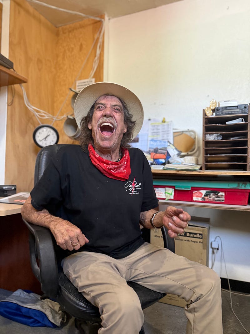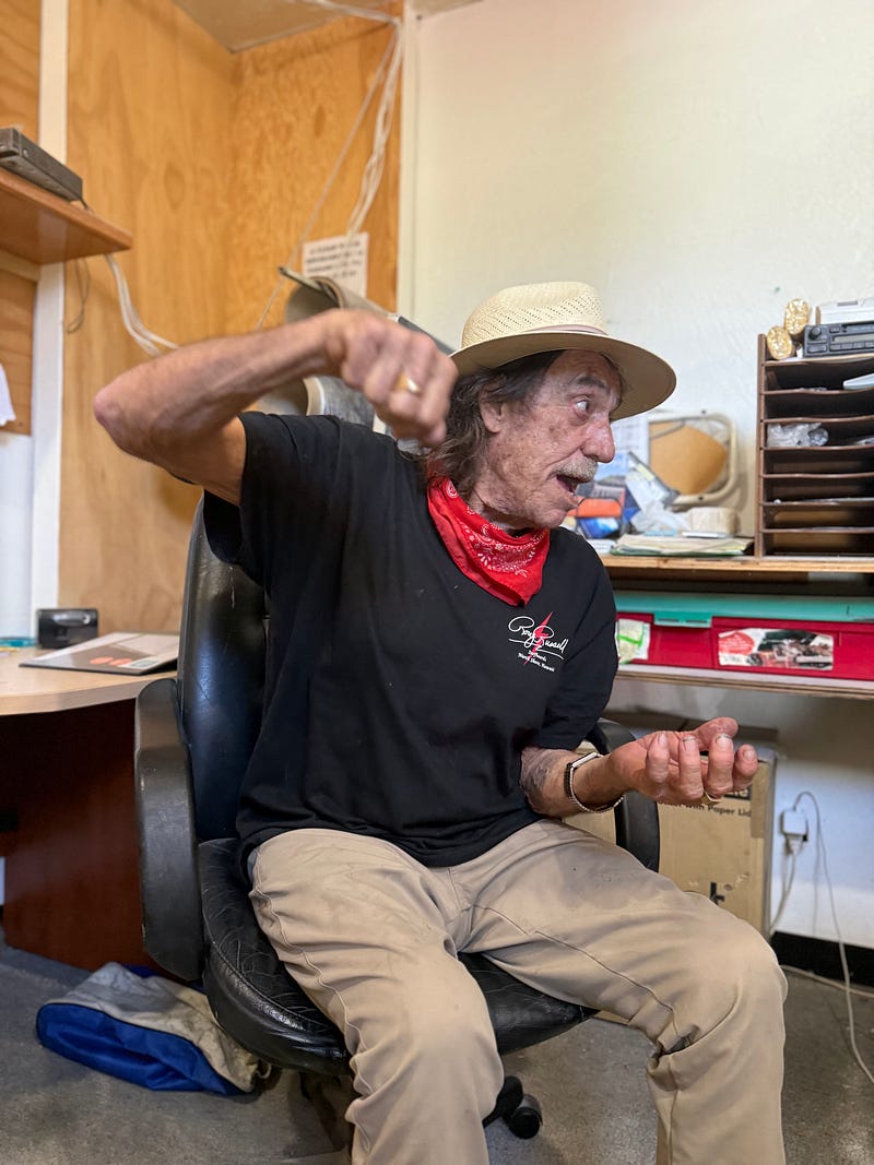 At a surfboard factory in Oceanside, California I chatted with Banzai Pipeline toreador Rory Russell. There was no red cape but there was, as you can see in the pics, a red bandana. Were there Verónicas, Porta Gayolas, Chicuelinas? Oh yes. In grand fashion.