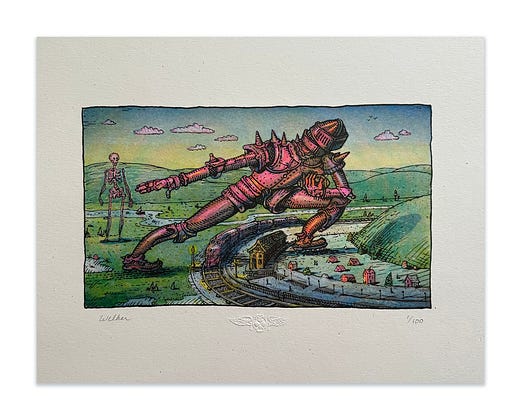 David Welker is kicking off 2025 with a Risograph Show on his web store featuring at least one Rift-era (and Trey-rejected) design: Gamehenge Football. Here’s how Welker describes the sketch on Instagram last month, which he’s turned into two 100-run variants for today’s sale: