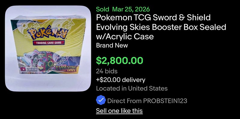 Back in early 2022 I made a YouTube video saying Pokemon Evolving Skies booster boxes were the best investments on earth