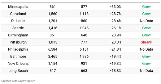 New this week: The FBI will formally release police staffing data in about a month, but staffing data from individual agencies suggests most large police departments may be growing after generally shrinking a ton since COVID