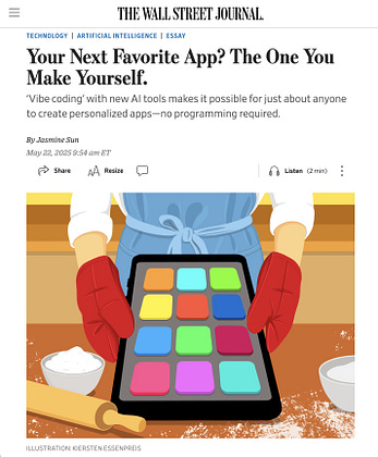 I'm in WSJ today, writing about vibe-coding and "home-cooked" personal apps—from baby-proofed video calling, to interactive study guides.