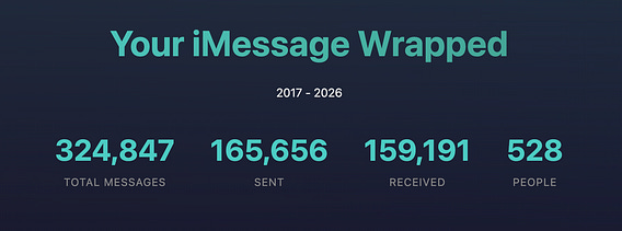 fun fact: you can Claude Code an “iMessage Wrapped” to have AI identify your best friends, falling outs, unrequited crushes, and more. anyway I’m generating a lot of economic value with my LLM