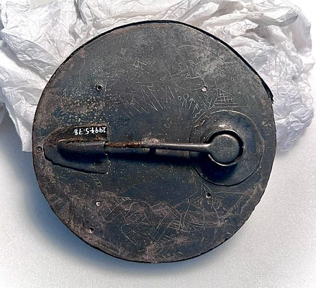 There’s a notable repair on the front, and the back plate has a runic inscription on it which reads luda:giboetaesigilae, either ‘Luda repaired the brooch’ or ‘Luda makes amends by means of this brooch’.