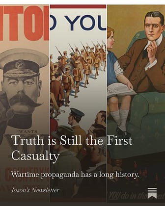 So who is really winning? Not sure, but I’m afraid foreigners—allies and adversaries alike—don’t have a monopoly on wartime propaganda. At least if the past is any guide. Are we being kept in the dark [again] this time? I think so but you decide. jasonlewis.substack.com…