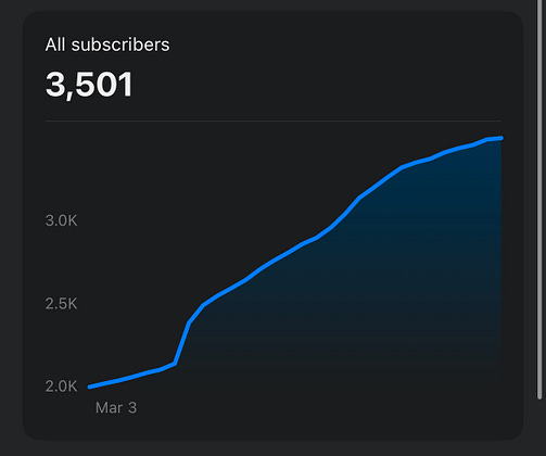 Thank you for 3,500 subscribers!! I am grateful to all of you for your support. It’s hard to believe how fast we’ve grown.
