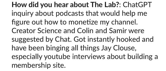 He has 60K+ subscribers on Youtube (perfect fit) and said in his application that be found me via ChatGPT.
