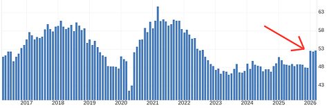 But zoom out for a second. The ISM, which is a solid read on financial conditions, is pointing towards improving expectations. In plain English, the market is quietly signalling that things could start picking up again.