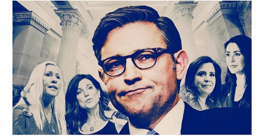 Speaker Mike Johnson, being a traditional “Christian,” is disparaging of women. He even recently complained that they “can’t compartmentalize” their thoughts. So it’s fitting that four women reps in the GOP are setting fire to his leadership in very interesting and damaging ways.