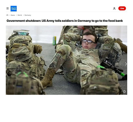 The U.S. military is advising its soldiers stationed in Germany who haven’t received their paychecks because of the government shutdown to seek help from local German food banks.