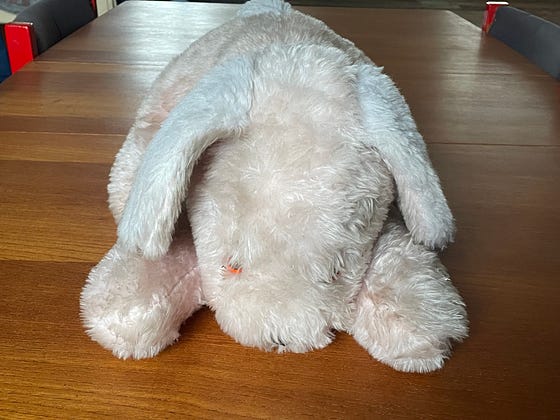 Today’s patient in my doll and bear hospital is cotton candy who I found wet and muddy at the house clearance warehouse. She’s having a spa day today!