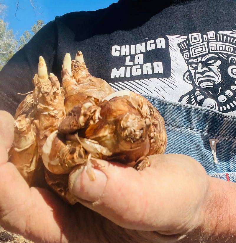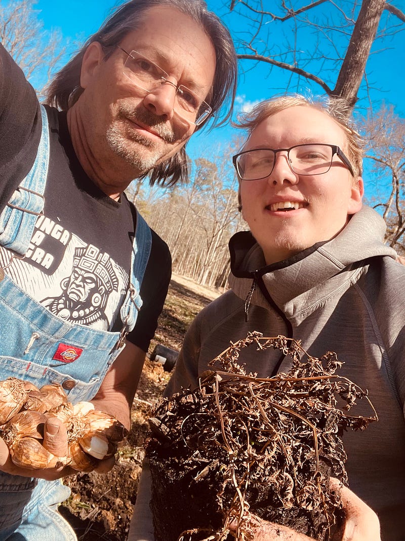 We planted 500 daffs today. So if you see them on sale in the garden center, buy them! Or if you have some, you never got around to planting, plant them!