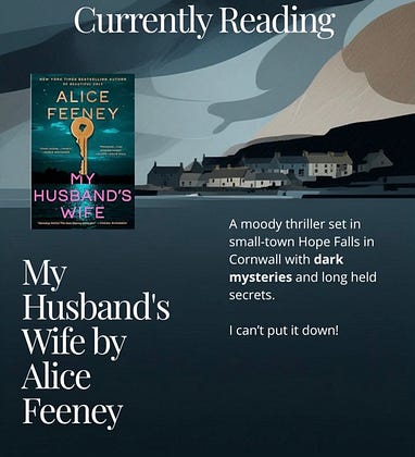 It’s twisty and juicy and a great read by the fireplace on a cold afternoon. My Husband’s Wife by Alice Feeney is perfect if you like small coastal towns where everyone has secrets.