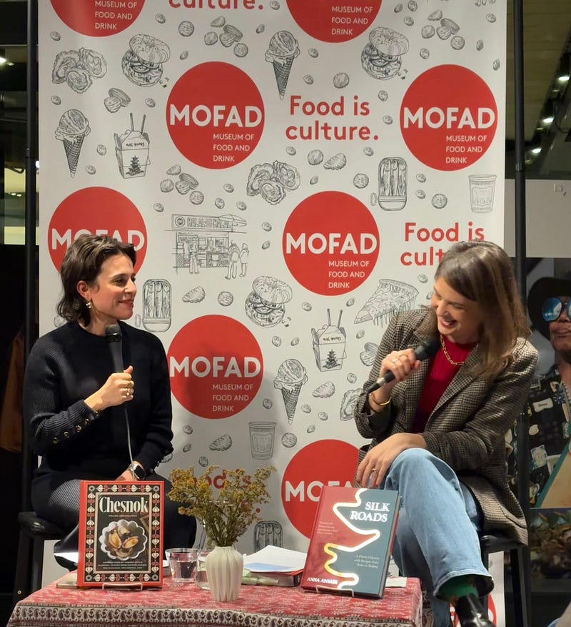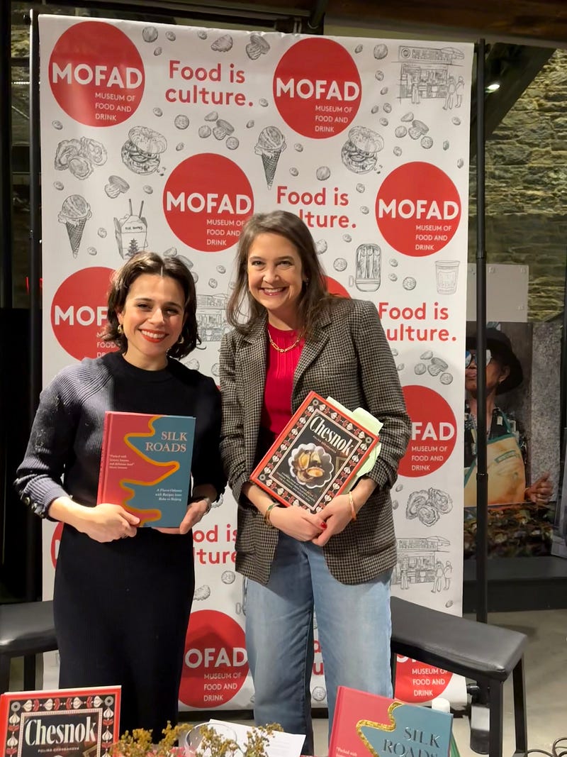 Tonight at the Museum of Food and Drink in Brooklyn Polina Chesnakova and Anna Ansari talked about their cookbooks, how food traditions are a conduit for history, and their mutual affection for Capri Suns.