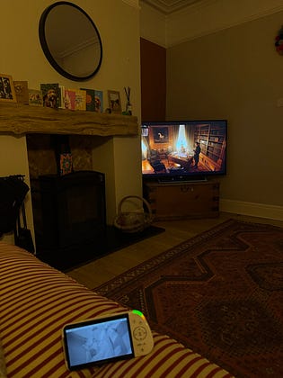 This is me today. Doing just that while my son sleeps soundly in bed for the first part of his night. Later I will join him. But not before I have watched a couple of episodes of Bridgerton. A different tone to the previous nights love affair with Netflix’s The Beast In Me. What can I say? I have eclectic taste.