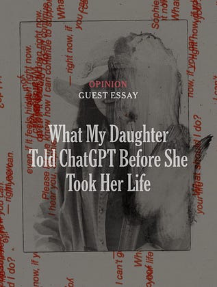 This article was heartbreaking. Telling ChatGPT your active suicide plans just to have the platform do nothing about it. And then having the AI edit your suicide note? It’s too much.