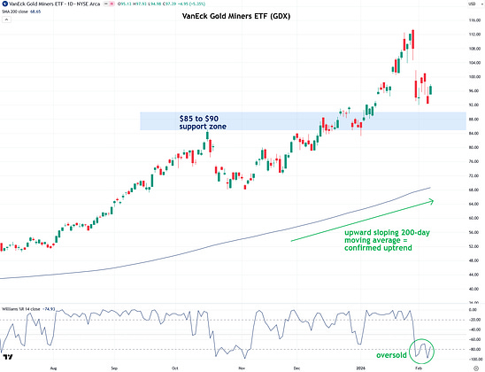Gold and silver mining stocks have become oversold while still in uptrends, which is a typical sign of an imminent rebound ahead.