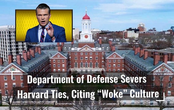The Department of Defense is ending all professional military education, fellowship, and certificate programs with Harvard University, saying the school no longer aligns with military needs and labeling it “woke.”