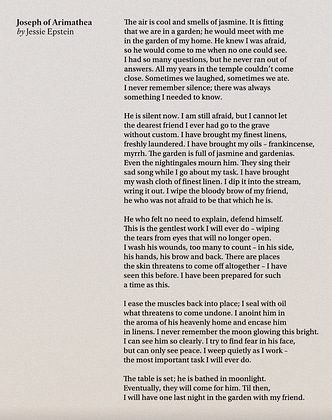 Inkwell published this poem last year, and it remains one of my favorites. Easter poetry never fails to interest, move, compel me. 🤍