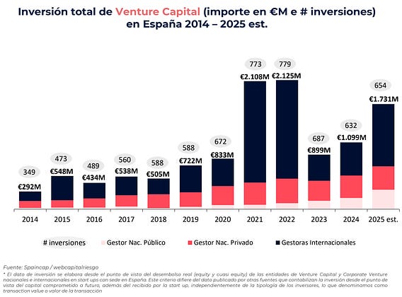 El año pasado se cerró, según las cifras de Spaincap, con €1.730M de inversión en compañías españolas, lo que supone un crecimiento del 57% respecto a 2024.