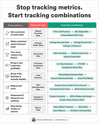 8 common e-commerce goals, and which metrics to track together for each one.