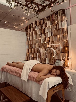 Morning massage at a local parlor š would you rub my back if Iām sore?