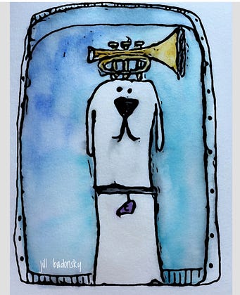 Chauncy was born with a trumpet on his head. Instead of barking, he plays Dizzy Gillespie.