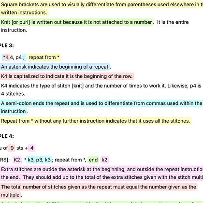 I’m learning Craft as a substitute to Evernote (it may be better, or it may be because I’m approaching it differently). As a way to diagram my written knitting instructions I used color instead of diagramming (although that could be fun!). I am in love and will be providing the colorful pdf when I post on Thursday for those who want a colorful article.