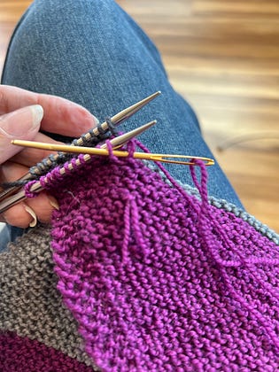 I goofed up one section of my shawl. Rather than reknit 14”, I cut the mistake out, reworked a row, and then had to graft them together in garter stitch. You’d think I’d deserve a medal or something with how much I’d been avoiding it, but it was SO much easier than I thought.