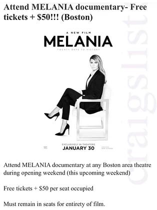 Apparently there are ads on Craigslist offering people money to see Melania’s movie. #bebest