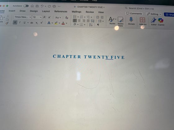 My first novel has twenty five chapters so typing these words right now has me excited, proud and so ready for the next level of work with the first draft. But, today, WOW!
