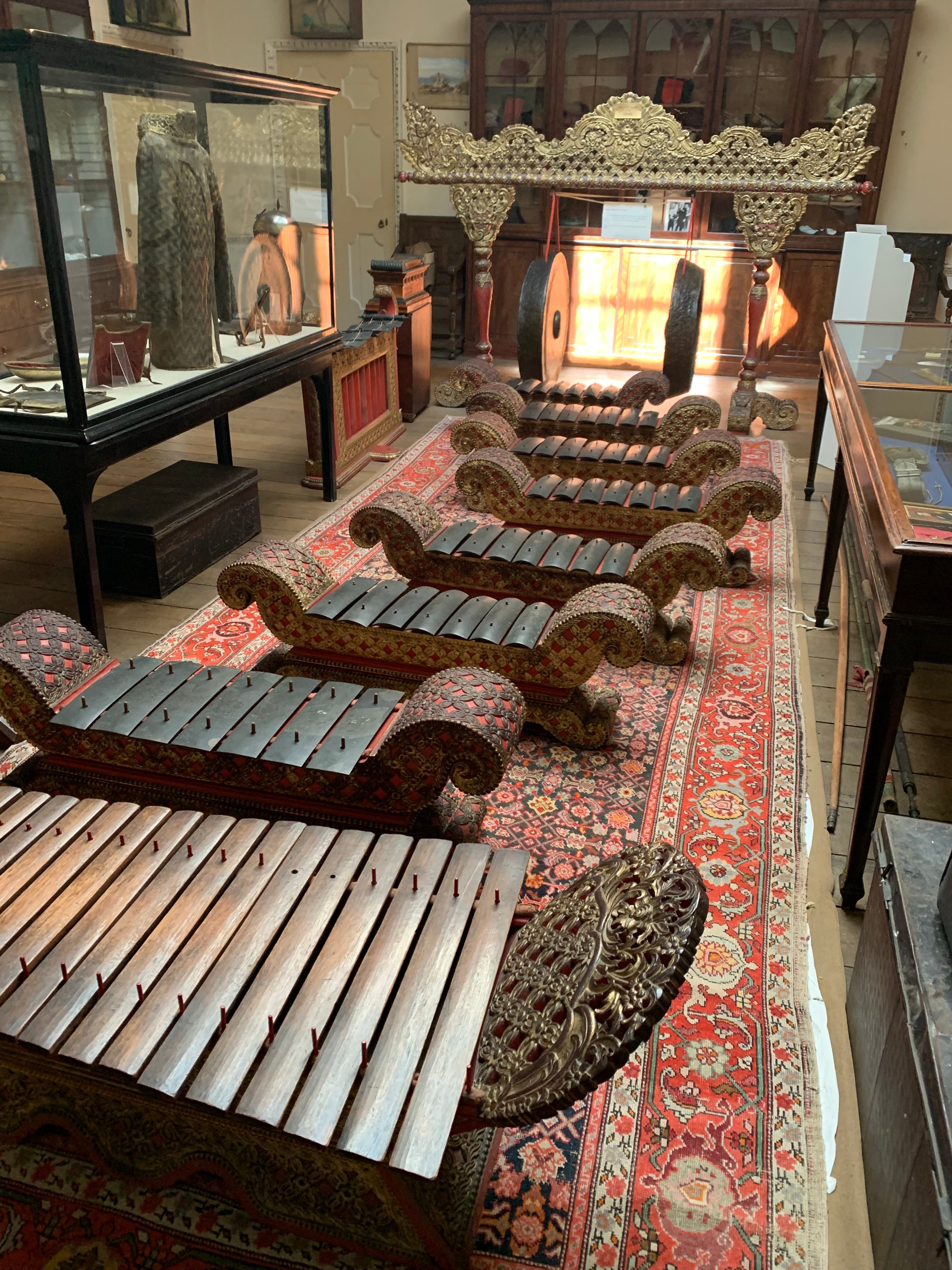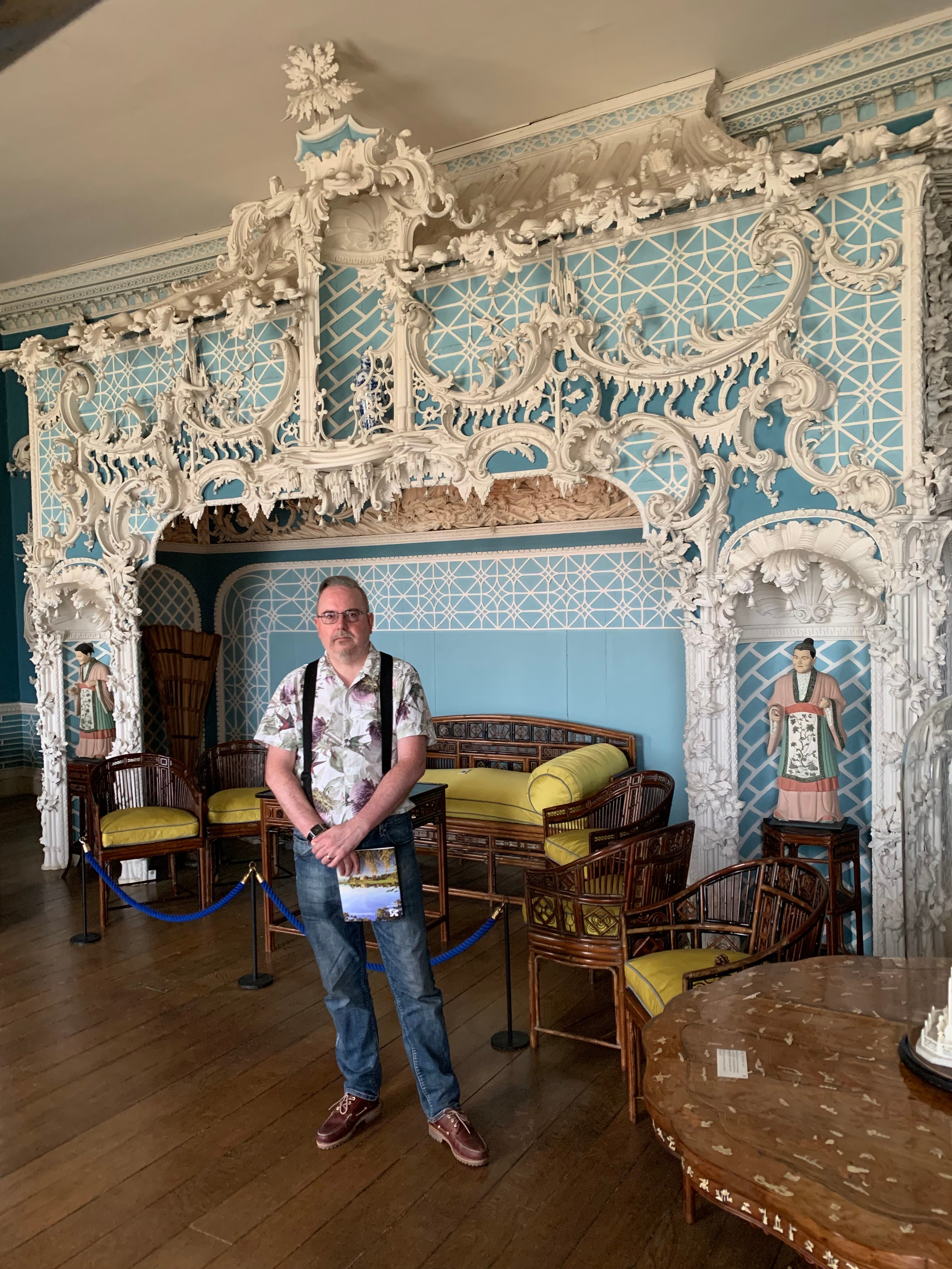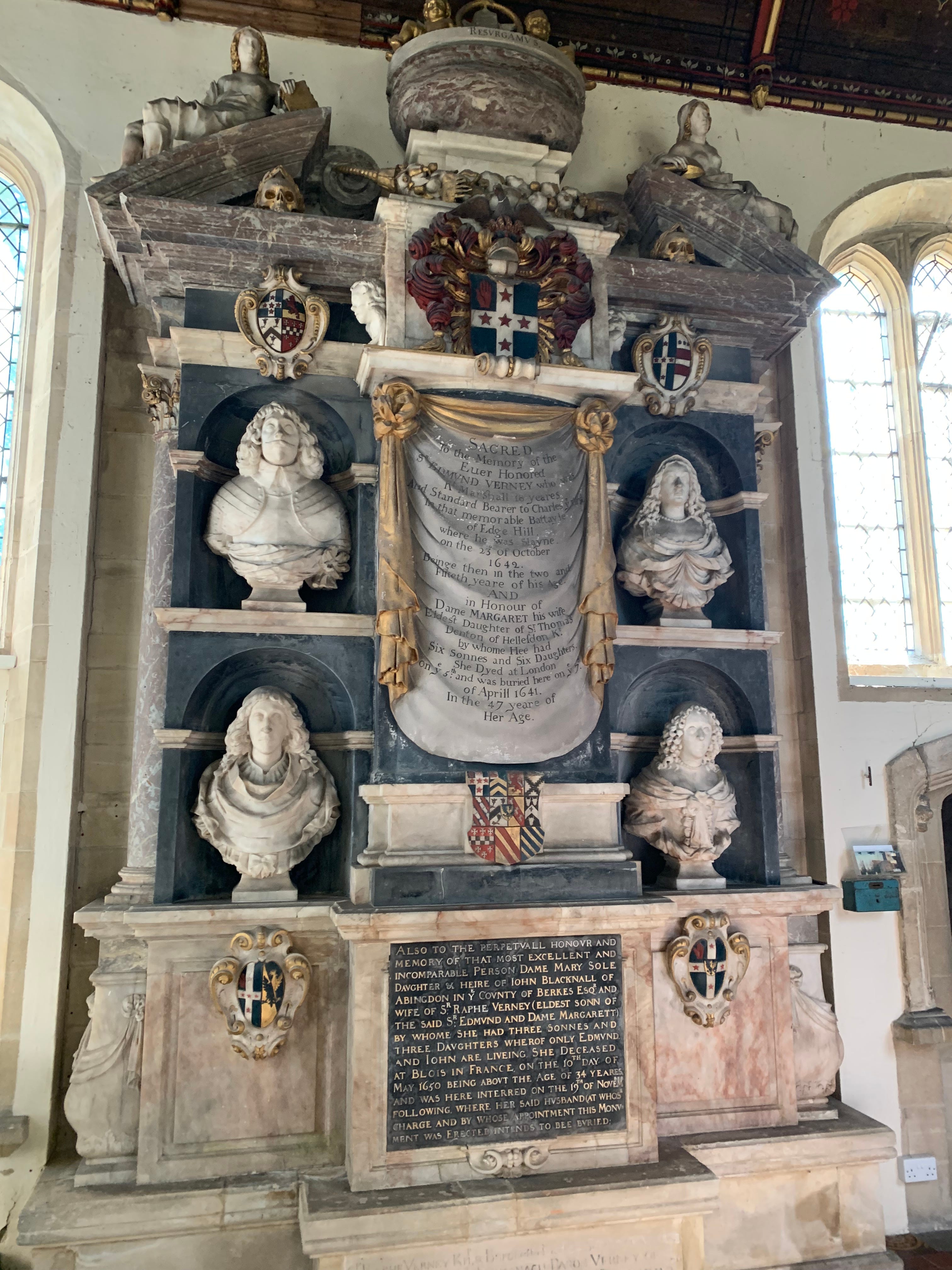 We went to nearby Claydon House, what remains of an enormous pile build by a profligate scion of the Verney family. Ralph, the 2nd Earl Verney, hired a wood carver to design the building; most of it was barely safe when Ralph died bankrupt (despite an investment in a Jamaican plantation), and his heir niece had to have two thirds of the mansion demolished. The interior of what remains is stunning, full of ornate wood carvings, painted to appear like plaster decoration. The Chinese Room is particularly impressive, in its vulgar bloated chinoiserie way. The mansion contains a Javanese Gamelan, once owned by Stamford Raffles. There are displays about Florence Nightingale, one of the sisters-in-law of a later Verney scion, who often stayed at the house. The local parish church is in the grounds, full of impressive Verney monuments.