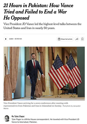 The New York Times should just give JD Vance a byline at this point. This is the third article this week where the reporter is doing Vance's PR: "He's so opposed to this! He really hates this, you guys!"
