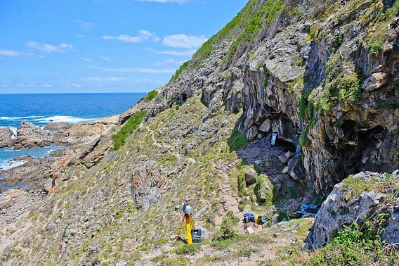 Blombos Cave is around 300 km east of Cape Town on the southern coastline of South Africa. First investigated in 1991 under direction of Christopher Henshilwood, the site has some of the most exceptional evidence of pigments, engraved ochre blocks, pigment markings, and shell beads from the period between 100,000 and 70,000 years ago.