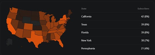 I haven’t updated my subscriber battle for top state in a minute, so here we go. California is opening up a lead, while Texas is recovering after dropping down to 4th. New York and Florida remain in the mix, while Pennsylvania came out of nowhere to land in the top 5.