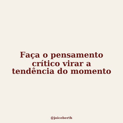 Fazer o pensamento crítico se tornar a tendência do momento é lutar contra a mediocridade de ideias e ideais que assola nossa sociedade. Já faz algum tempo que, silenciosamente, se trabalha para a morte do pensamento crítico porque se sabe que ela fomenta as hierarquias que caracterizam as desigualdades de todo tipo.
