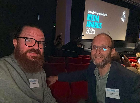 I took with me to the ceremony the investigative journalist Asa Winstanley.