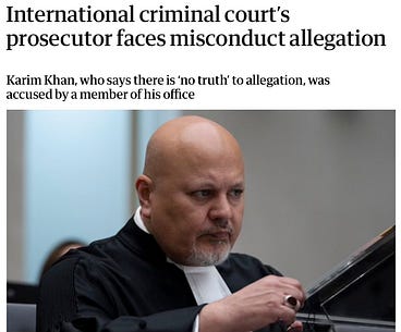 That is the context for understanding the latest "unspecified allegations of misconduct" against Karim Khan, the chief prosecutor at the International Criminal Court, from someone inside his office.