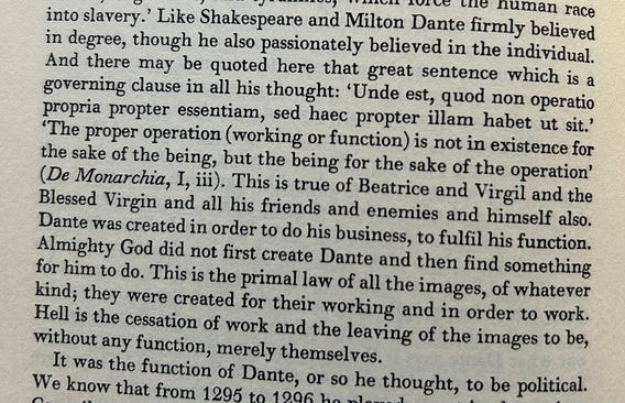 Charles Williams in The Figure of Beatrice writing on final cause in the art of fiction (or one of its modes, anyway). I think this may be Williams’ best book. I read it 15 years ago but I didn’t understand then how to apply it to my own art. And even still it’s a hard sell. Someone, drawing on Williams and Sayers among others, needs to write a Defense of Allegory for our time like the various “defenses” of poetry or of vernaculars in the Middle Ages and Renaissance (and even into the romantic period as with Shelley). It would be a defense of virtue ethics into the bargain.