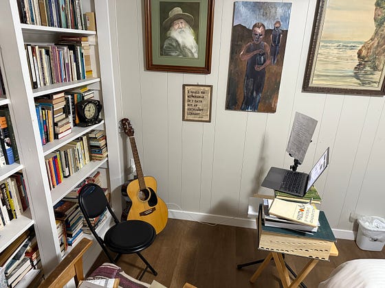 The book launch zoom studio ready for action. Yes that guitar sitting there will be played.