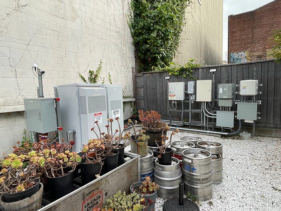 Entrepreneurship program happy hour at a local Berkeley restaurant led to a back office discovery - keg storage and generations of small cells, from Cingular (now AT&T), AT&T and T-Mobile. The small cells pay rent, the kegs do not…