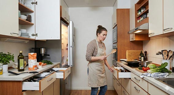 What happened: You needed a spatula. You opened a drawer. It wasn't there. You opened another. While looking, you remembered you also needed olive oil. Opened a cabinet. Saw the spice rack was disorganized. Started to fix it. Remembered the spatula. Opened another drawer.