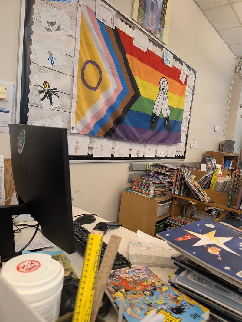 As a concerned parent at Cedarvale Public School in Forest Hill, Toronto, I was recently inside the building and couldn't believe the sheer volume of sexualized LGBTQ+ cult signage/flags on display-it's like stepping into an alternate reality. The real eye-opener was the massive transgender cult flag dominating the school library, surrounded by children's handwritten assignments where they were prompted to imagine and describe "feeling like" someone or something other than themselves.